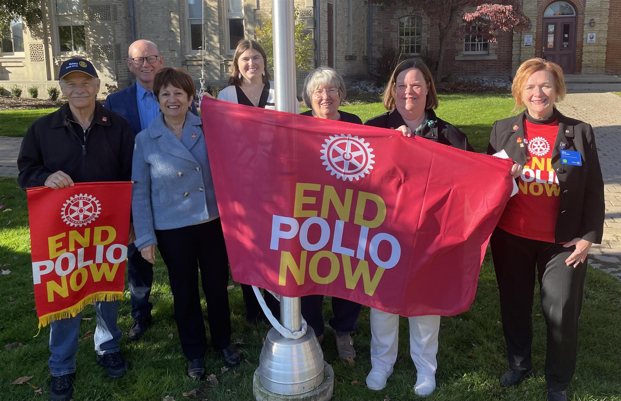 To mark the occasion, members of the RCNSwere joined by County representatives Heidy VanDyk and Laiken Castles in a ceremonial flag raising at the Norfolk County offices – all in an effort to promote the raising of community funds and awareness. Heidy added her own remarks concerning the value of the RCNS in the Norfolk community as well as the importance of the ‘End Polio Now’ program over the years. RCNS member Lisa Bishop provided program context and appreciation to the County for their support. She noted that very dollar raised by Rotary is currently matched 2-to-1 by the Bill & Melinda Gates Foundation, effectively tripling the impact of each donation. Funds support immunizations, surveillance, and operations needed to reach every last child in high-risk areas.