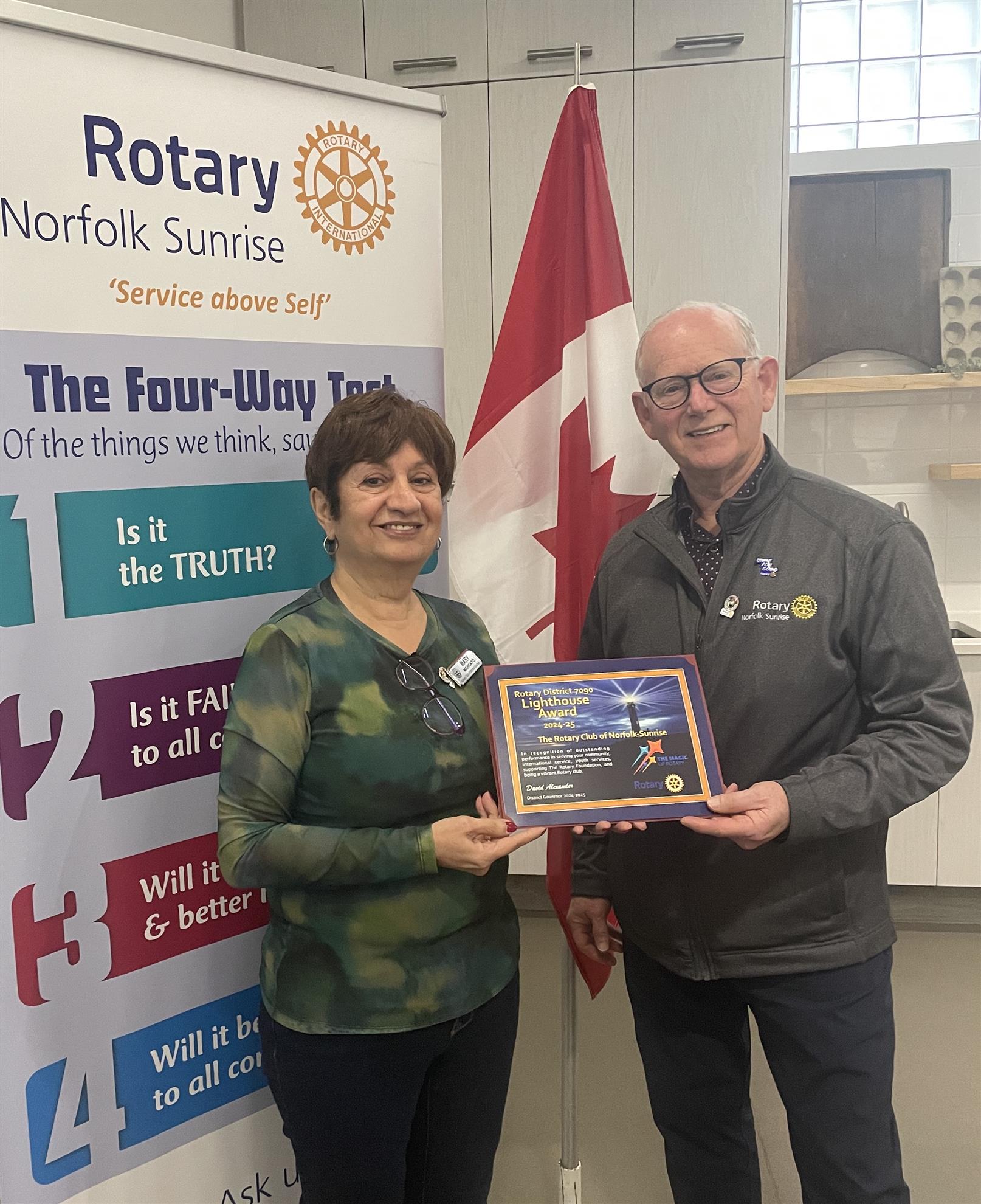 - District 7090 Lighthouse Award - our Club achieved the required number of goals for the Rotary Club Excellence Award and then completed a specific number of additional activities, such as participating in district-led training, engaging in community service, and using social media to promote Rotary. We were one of only six Clubs to be so-recognized.