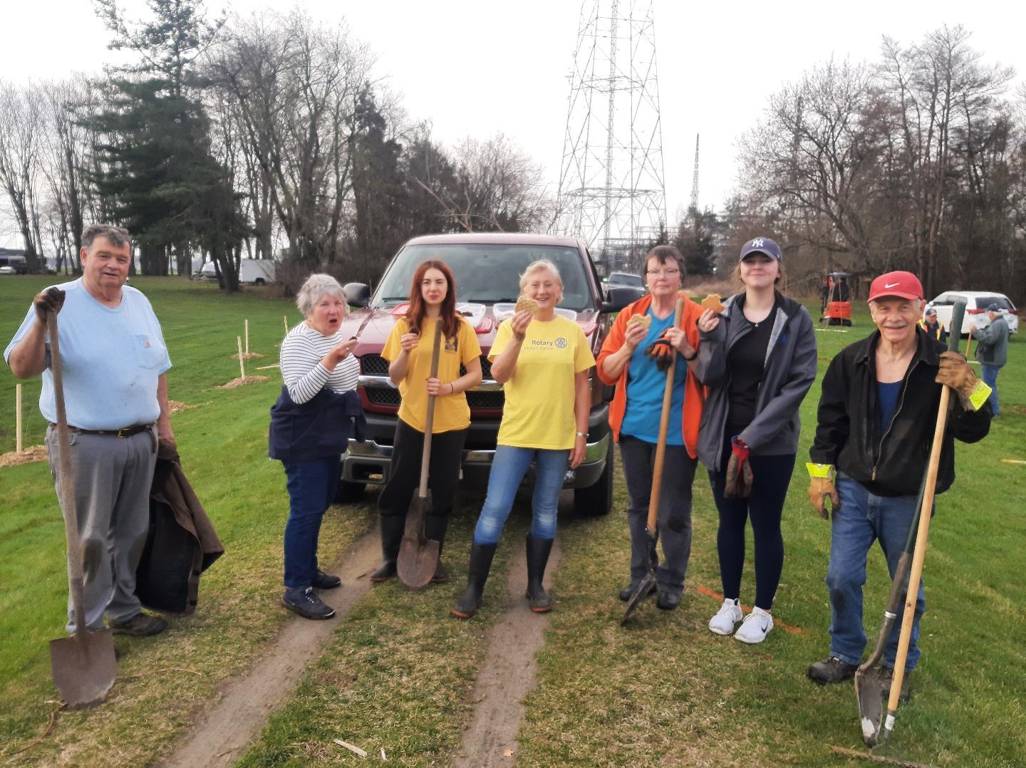 It was a great day .... until it wasn't!Celebrating Earth Day 2025, the RCNS undertook to add even more trees to our Sunrise Trail. So it was that ~25 Sunrisers (supported by a few 'toys for the boys'), arrived to plant trees to make our Trail better.