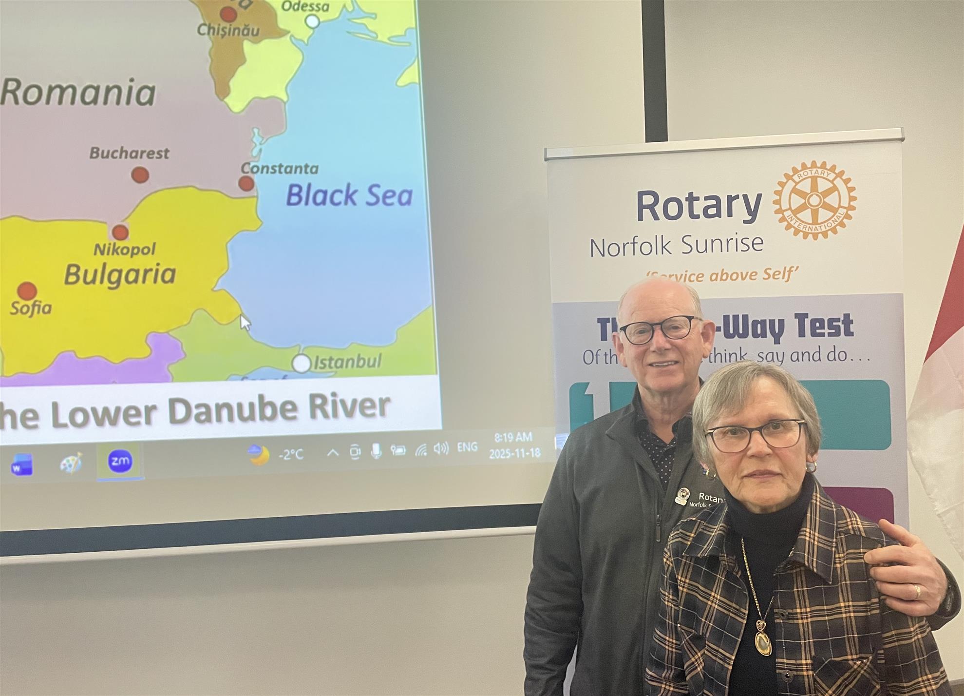 On Tuesday morning, 18 Nov 2025, we welcomed our own Ross & Joyce Gowan as our Guest Speakers. Mary Mercato introduced the Gowans who spoke about their recent 50th Anniversary celebtion cruise along the eastern portion of the Danube River.